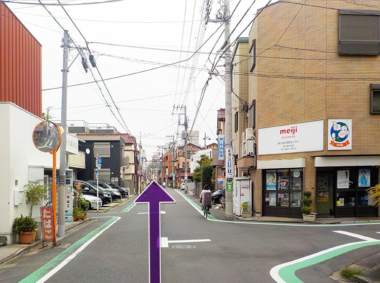 みのり商店会を、しばらく直進してください。